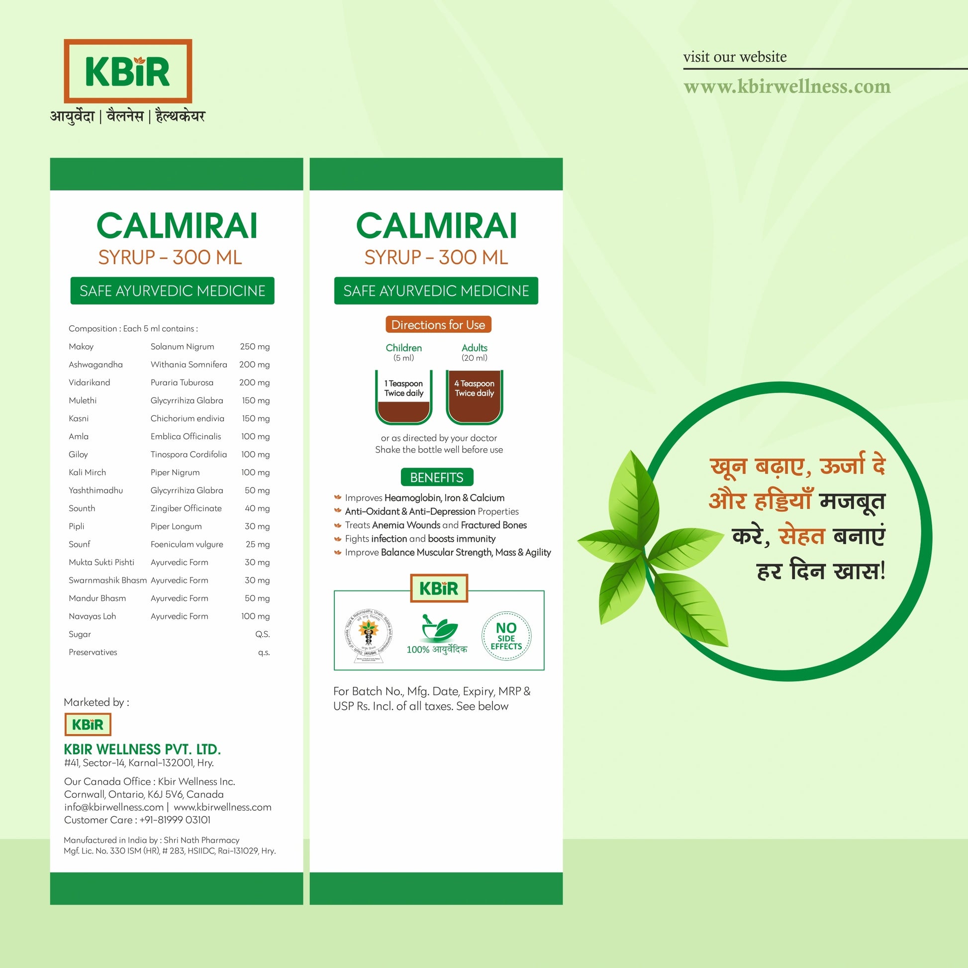 KBir Calmirai Syrup is a comprehensive Ayurvedic blood tonic formulated with a powerful blend of traditional herbs and essential minerals. This safe Ayurvedic medicine combines the wisdom of ancient formulations with modern nutritional science to address multiple health concerns simultaneously.