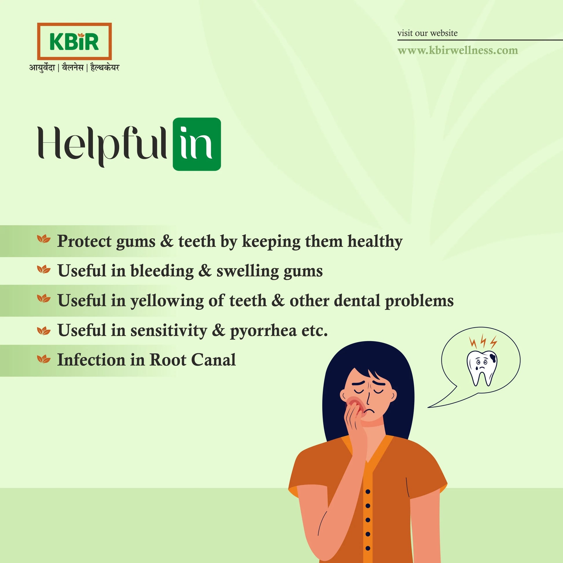Dant Manjan Contains: Shatphali 1.50gm, Majuphal 1.75gm, Betelnut 6.25gm, Kali Mirch 0.80gm, Camphor 1.75gm, Leel 1.50gm, Clove 1.10gm, Saunf 1.15gm, Choti Elaichi 1.25gm, Nagarmotha 1.50gm, Zharkar 1.50gm, Phitkari 2.0gm, Daruhaldi 1.75gm, Kaliyar 1.20gm.