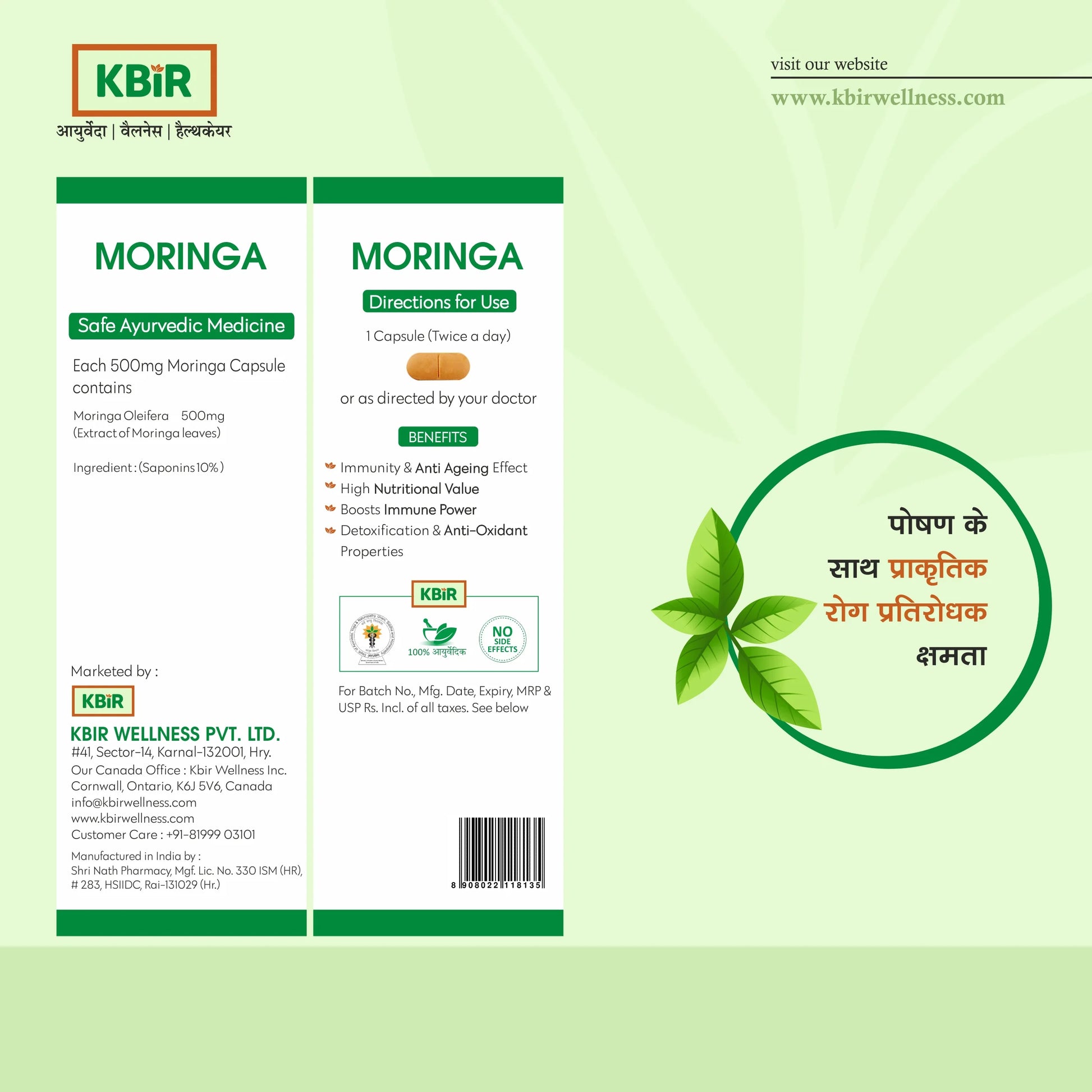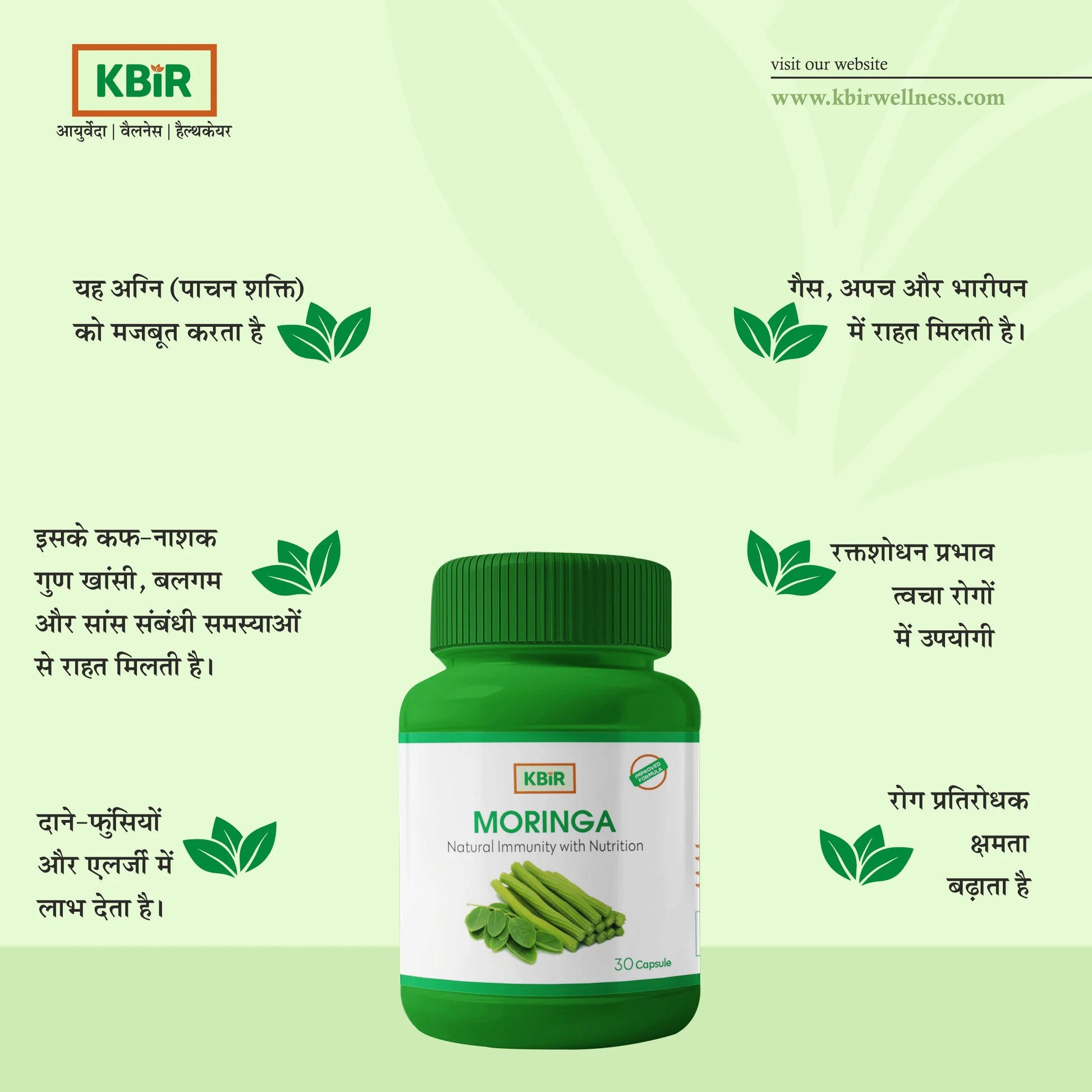 KBir Moringa Capsules offer the concentrated power of nature's most nutrient-dense superfood in convenient capsule form. Known as the "Miracle Tree," Moringa Oleifera has been treasured for centuries in Ayurvedic medicine for its exceptional nutritional profile and health-promoting properties.